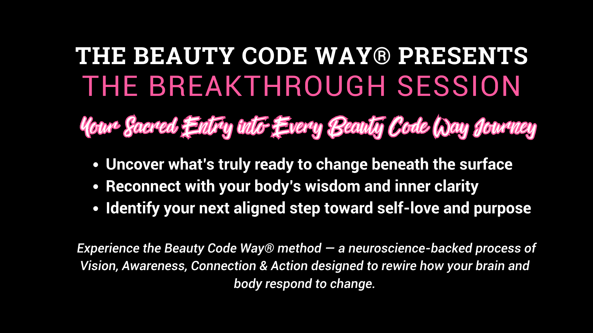 By submitting this form, you give permission to receive emails from Beauty Code Way® regarding The Illumination Series and related offerings. For compliance and security, you must confirm your subscription via the email sent to you immediately after signing up. Without confirmation, you will not receive the series. You may unsubscribe at any time.